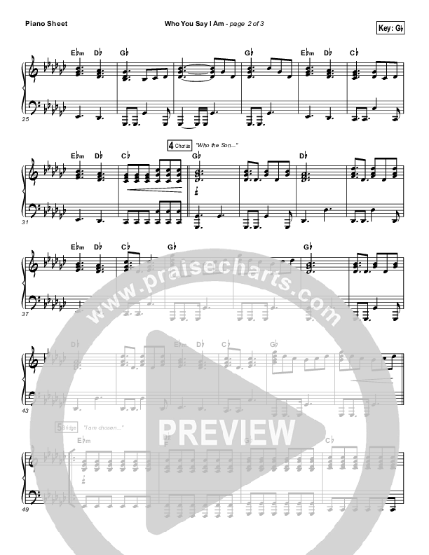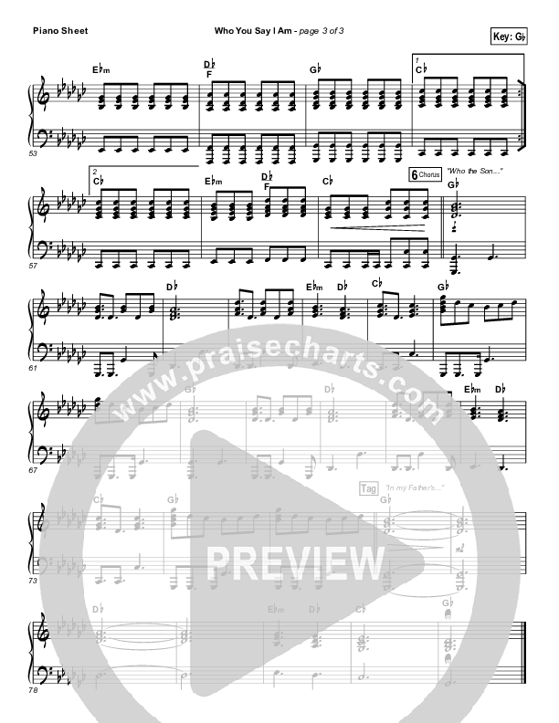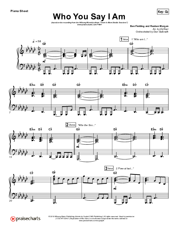 Download the piano sheet for Who You Say I Am (Studio) by Hillsong Worship, from the album There Is More: Studio Sessions. This song was arranged by Ed Kerr / Daniel Galbraith in the key of Ab, G, Gb.