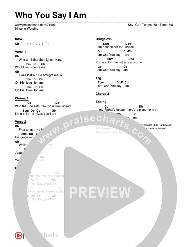 Who You Say I Am (Studio) Chords PDF (Hillsong Worship)