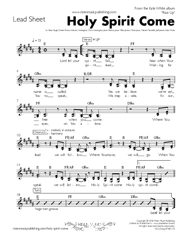 Download the sheet music for Holy Spirit Come by Kate White, from the album Rise Up.