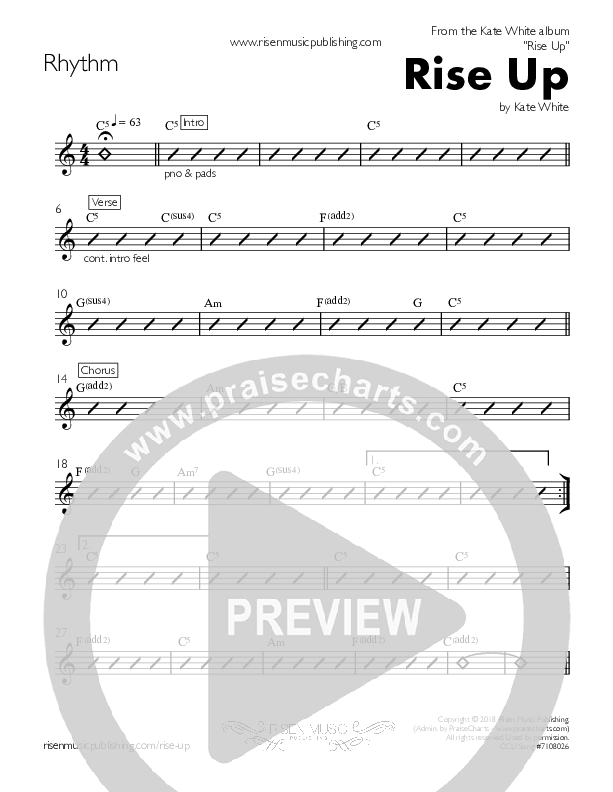 Download the Rhythm Chart for Rise Up by Kate White, from the album Rise Up.