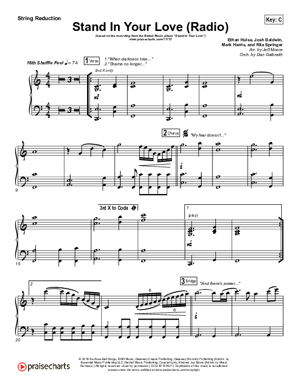 Download the Orchestration string parts for Stand In Your Love (Radio) by Bethel Music / Josh Baldwin, from the album Stand In Your Love. This song was arranged by Jeff Moore / Daniel Galbraith in the key of A, Ab, Bb, C, G.