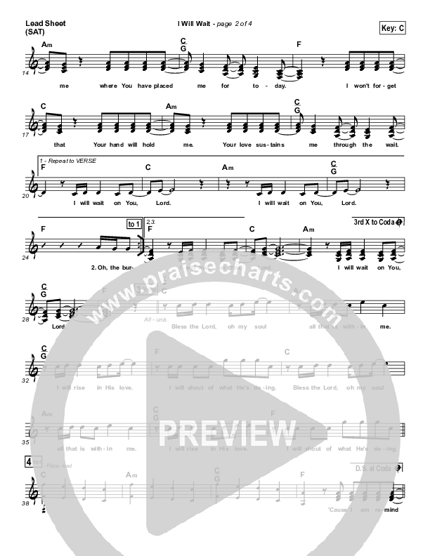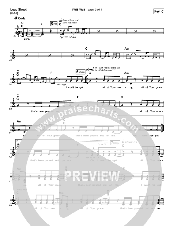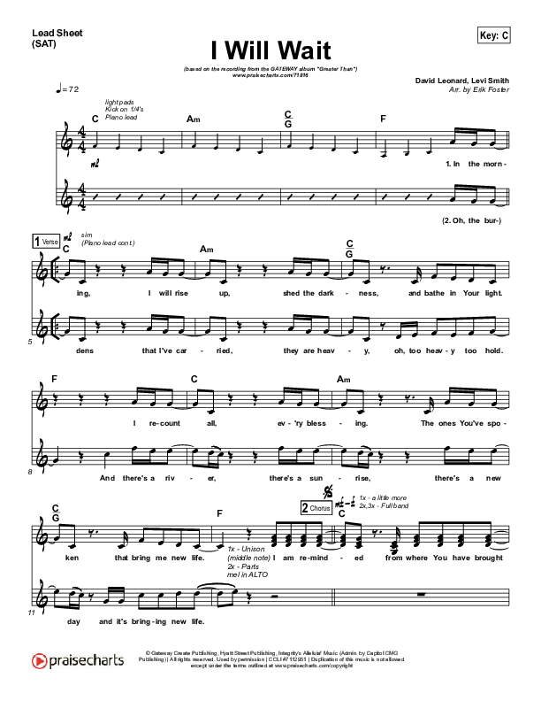 Download the sheet music for I Will Wait by GATEWAY, from the album Greater Than. This song was arranged by Erik Foster in the key of B, C.