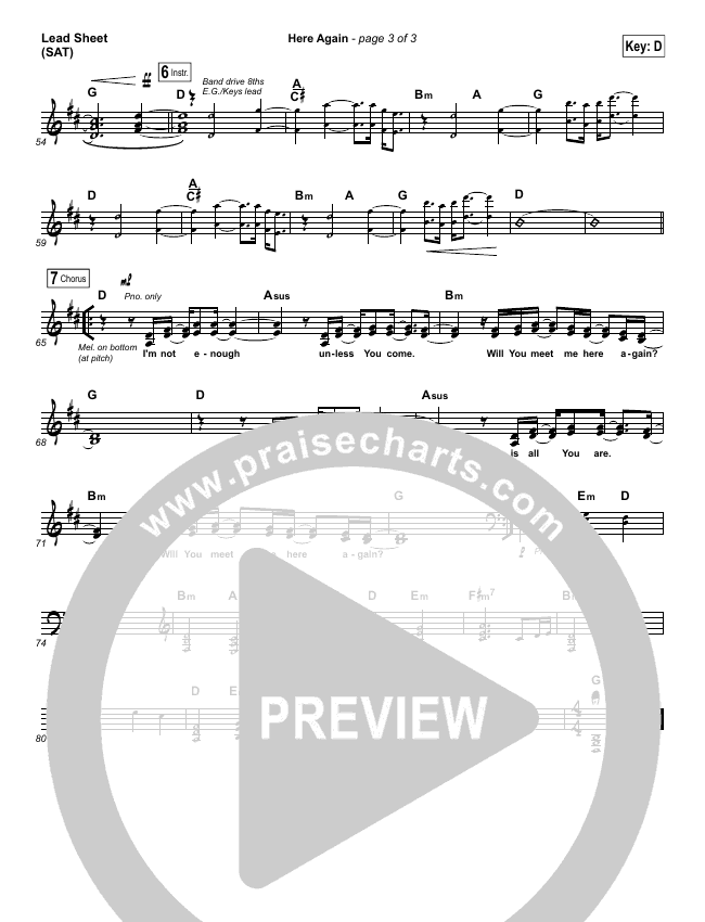 Download the Orchestration for Here Again by Elevation Worship, from the album Hallelujah Here Below. This song was arranged by Daniel Galbraith in the key of A, Bb, C, D.