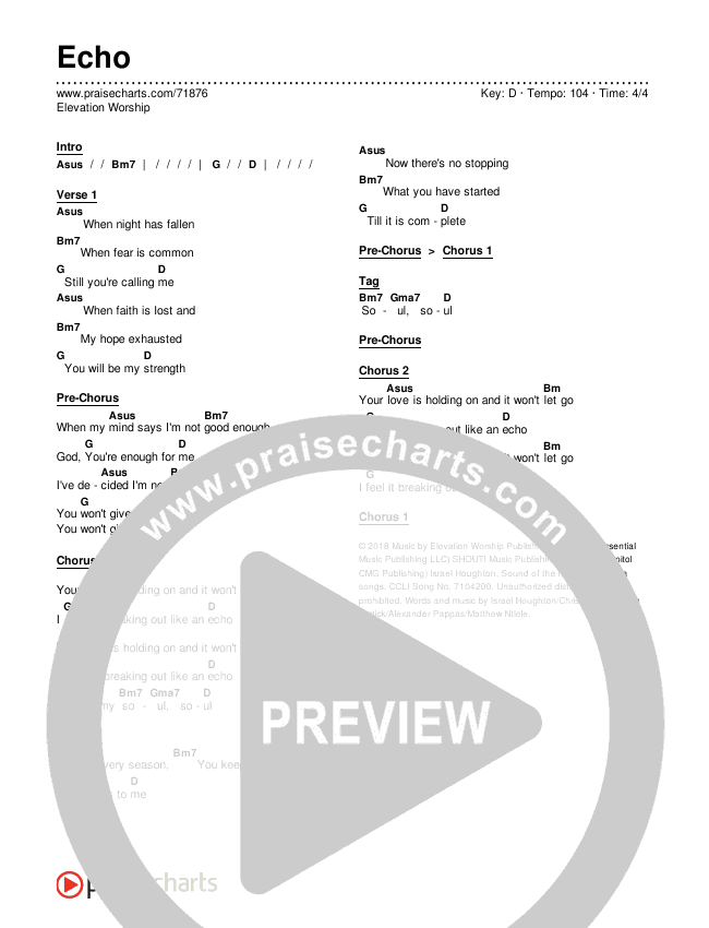 Echo Chords PDF (Elevation Worship / Tauren Wells)