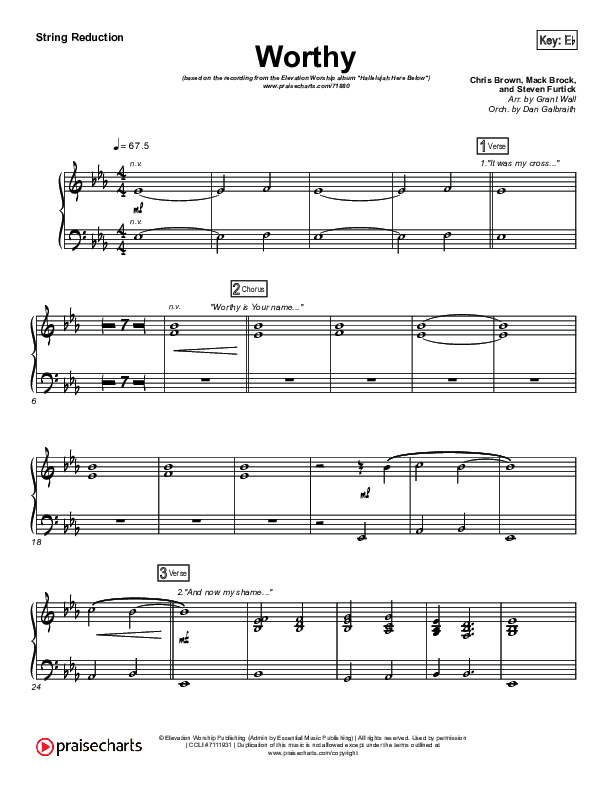 Download the Orchestration for Worthy by Elevation Worship, from the album Hallelujah Here Below. This song was arranged by Grant Wall / Daniel Galbraith in the key of D, Eb.