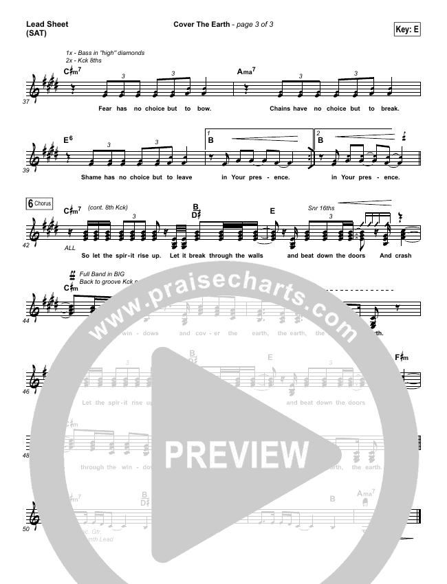 Download the sheet music for Cover The Earth by Cody Carnes / Kari Jobe, from the album Cover The Earth. This song was arranged by Jeff Moore / Daniel Galbraith in the key of E, Eb.