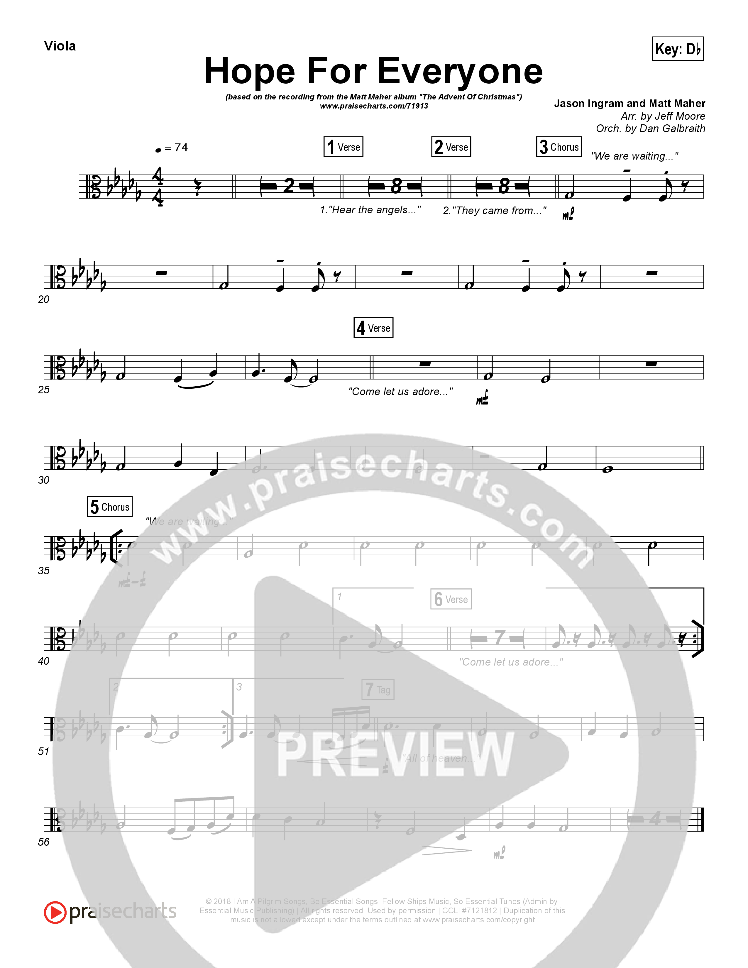 Download the Viola sheet music for Hope For Everyone by Matt Maher, from the album The Advent Of Christmas. This song was arranged by Jeff Moore / Daniel Galbraith in the key of B, C, D, Db.