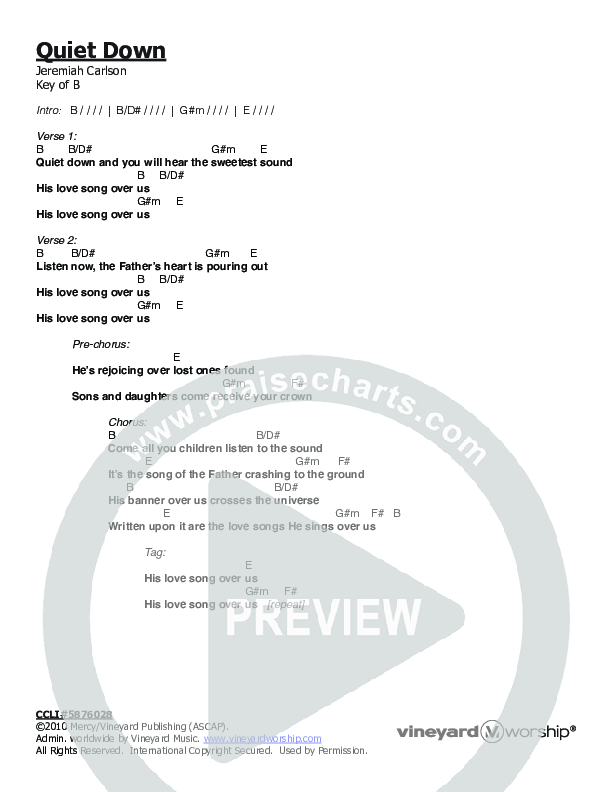 Quiet Down Chord Chart (Vineyard Worship)