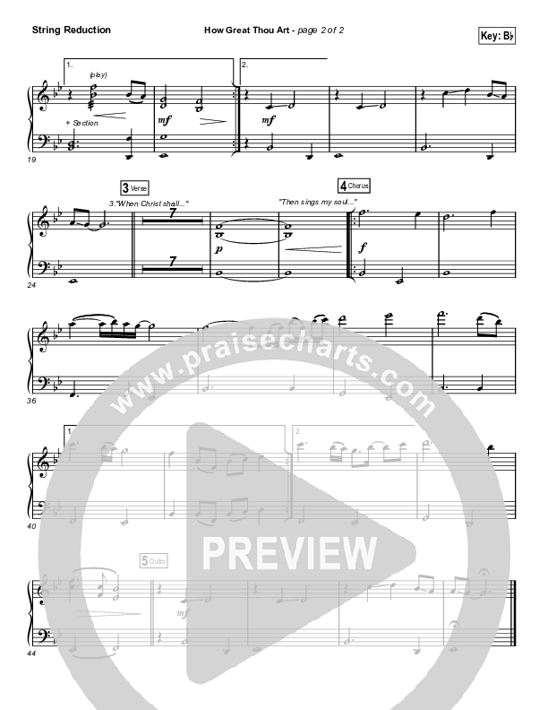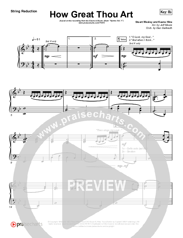 Download the String Reduction sheet music for How Great Thou Art by Shane & Shane / The Worship Initiative, from the album Hymns Vol 1. This song was arranged by Jeff Moore / Daniel Galbraith in the key of B, Bb, C, D, Eb.