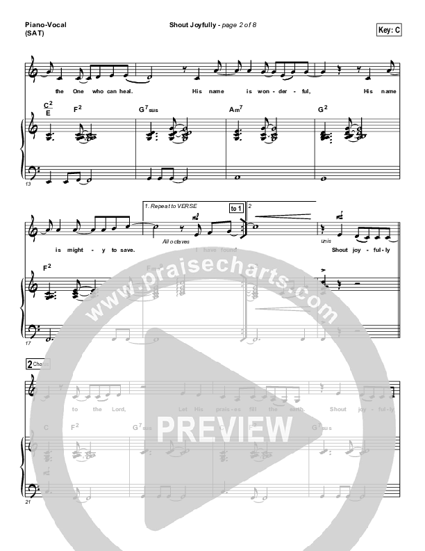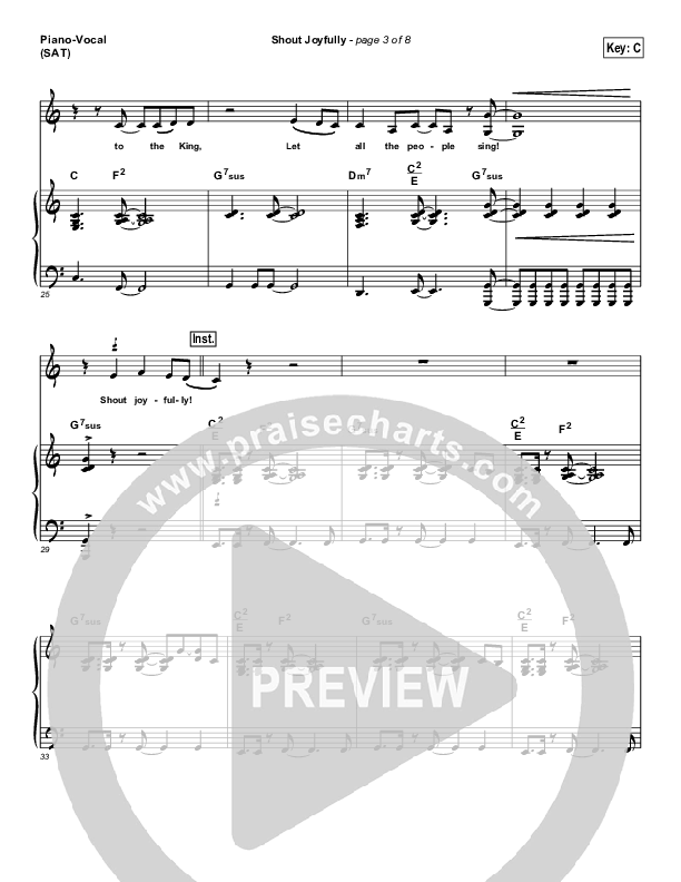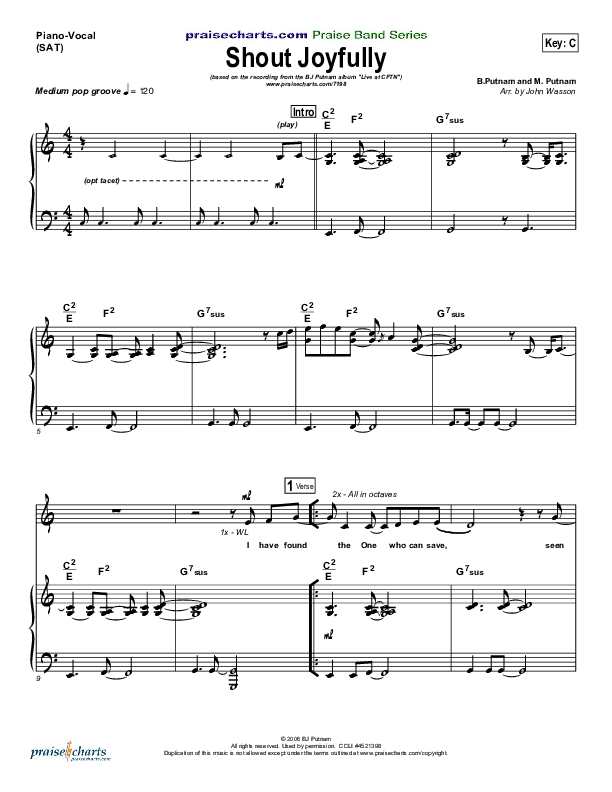 Download the sheet music for Shout Joyfully by BJ Putnam, from the album BJ Putnam Live @ CFTN. This song was arranged by John Wasson in the key of C, D.