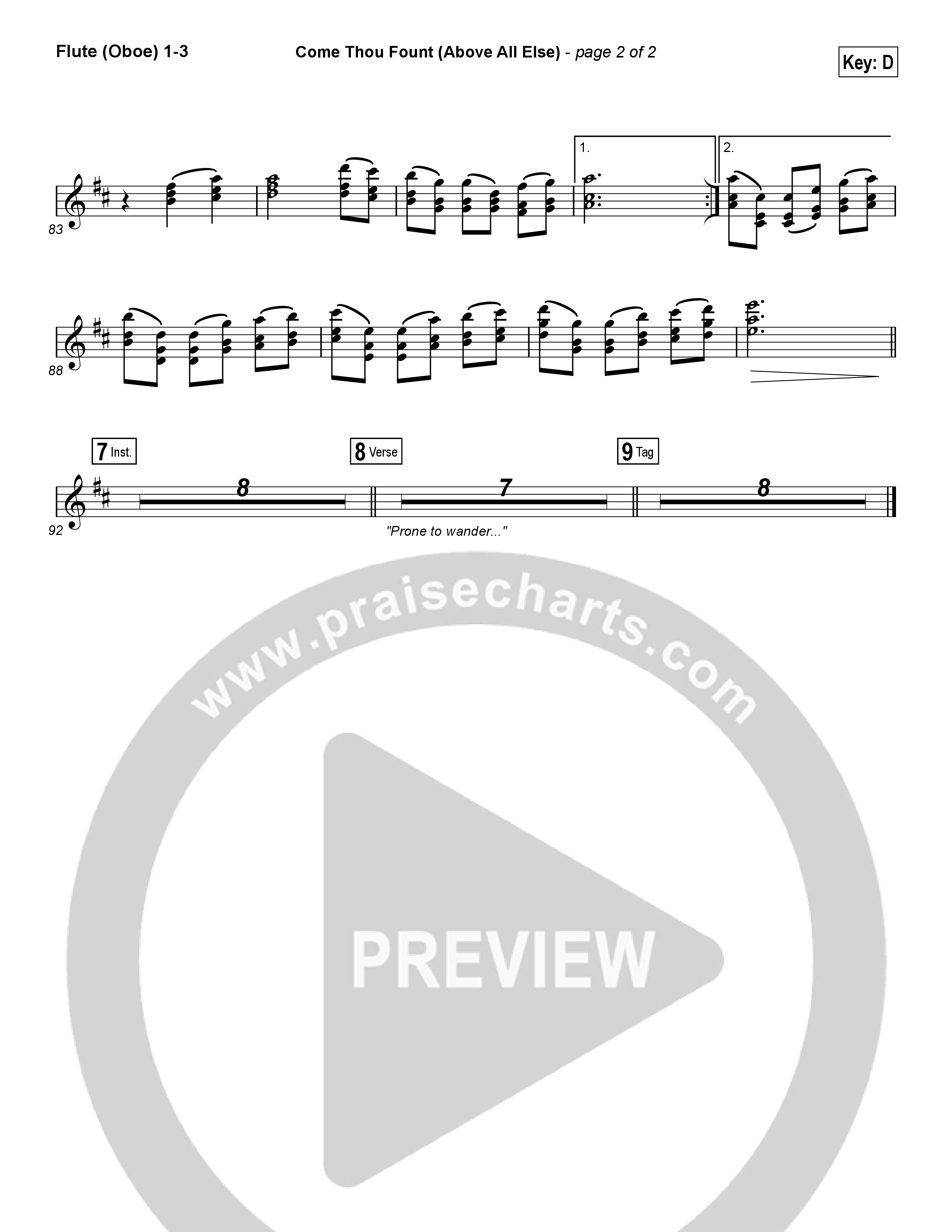 Come Thou Fount (Above All Else) Flute/Oboe Sheet Music PDF (Shane & Shane / The Worship Initiative)