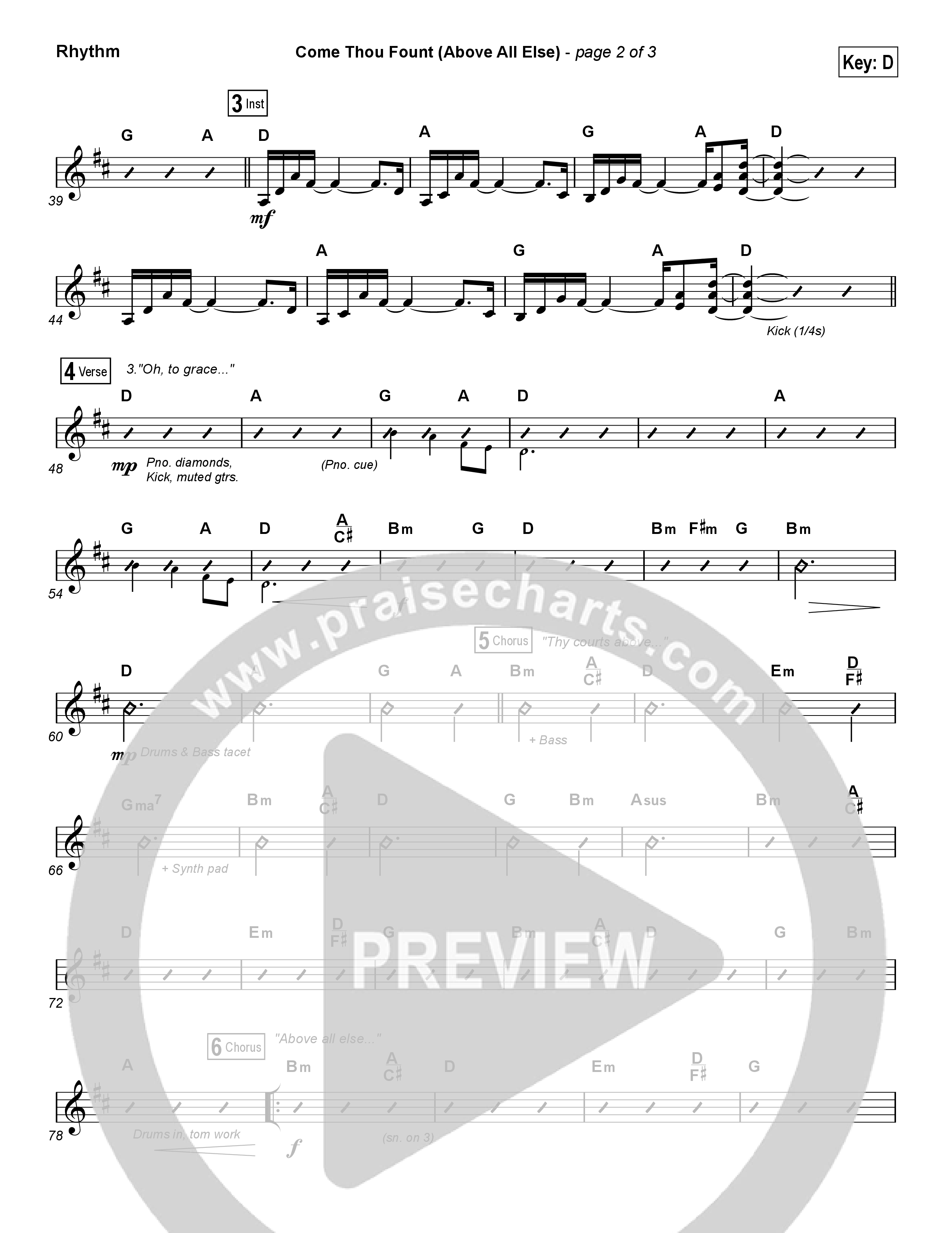 Download the Rhythm Chart for Come Thou Fount (Above All Else) by Shane & Shane / The Worship Initiative, from the album Hymns Vol 1. This song was arranged by Ed Kerr / Daniel Galbraith in the key of C, D.