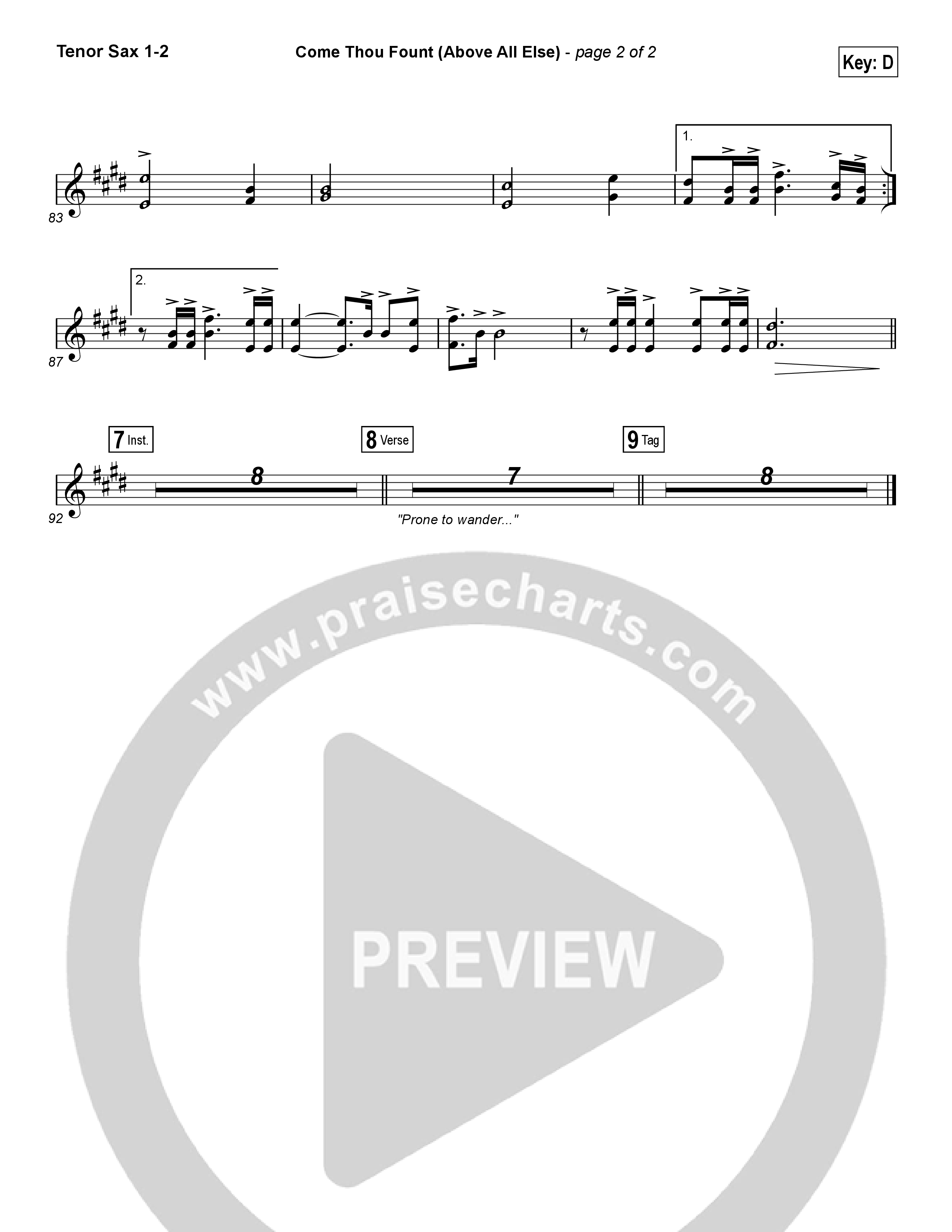 Download the Tenor Sax sheet music for Come Thou Fount (Above All Else) by Shane & Shane / The Worship Initiative, from the album Hymns Vol 1. This song was arranged by Ed Kerr / Daniel Galbraith in the key of C, D.