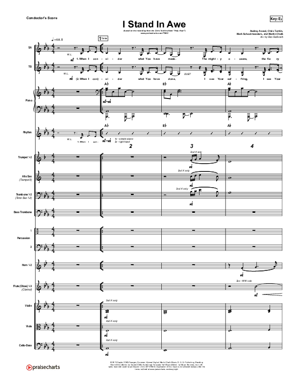 Download the Orchestration for I Stand In Awe by Chris Tomlin / Nicole Serrano, from the album Holy Roar. This song was arranged by Daniel Galbraith in the key of E, Eb.