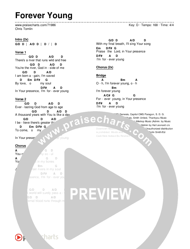Forever Young Chords PDF (Chris Tomlin)