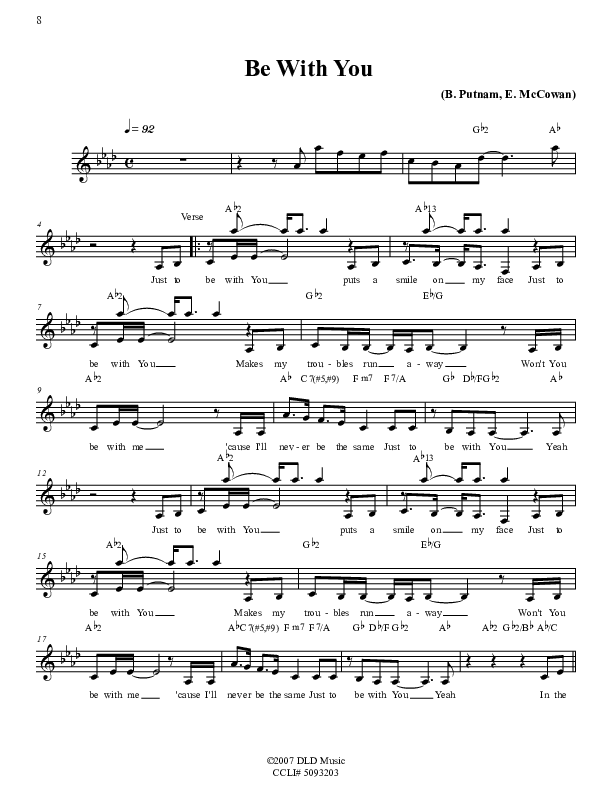 Download the sheet music for Be With You by BJ Putnam, from the album BJ Putnam Live @ CFTN.
