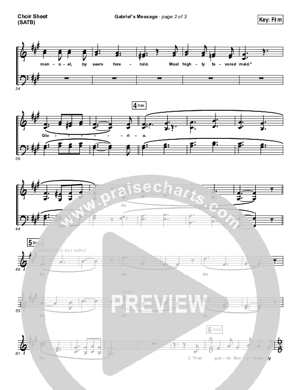 Download the Choir Sheet for Gabriel's Message by Matt Maher, from the album The Advent Of Christmas. This song was arranged by Jeff Moore / Daniel Galbraith in the key of Em, F#m.