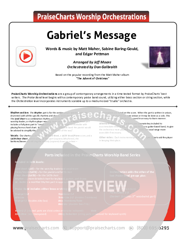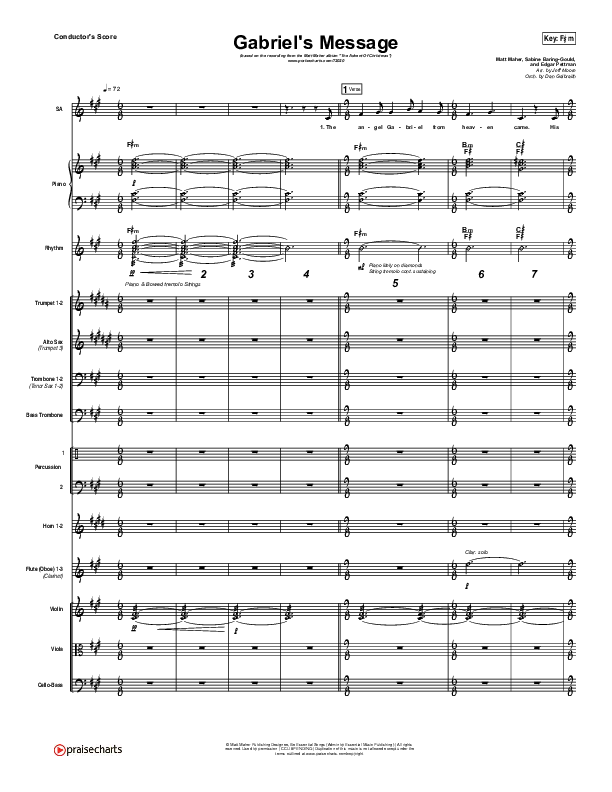 Download the Orchestration for Gabriel's Message by Matt Maher, from the album The Advent Of Christmas. This song was arranged by Jeff Moore / Daniel Galbraith in the key of Em, F#m.