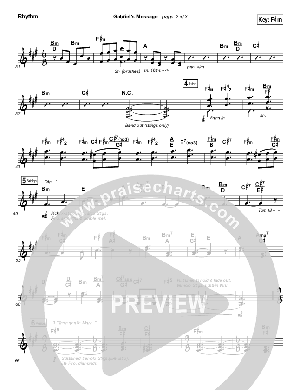 Download the Rhythm Chart for Gabriel's Message by Matt Maher, from the album The Advent Of Christmas. This song was arranged by Jeff Moore / Daniel Galbraith in the key of Em, F#m.