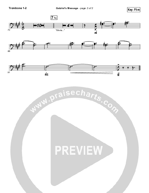 Download the Trombone 1,2 sheet music for Gabriel's Message by Matt Maher, from the album The Advent Of Christmas. This song was arranged by Jeff Moore / Daniel Galbraith in the key of Em, F#m.
