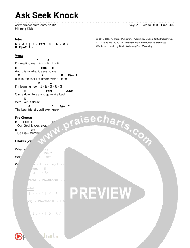 Ask Seek Knock Chords PDF (Hillsong Kids)