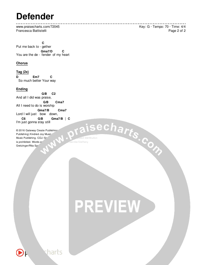 Defender Chords PDF (Francesca Battistelli)