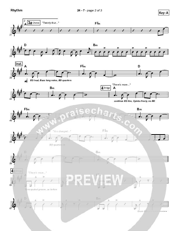 Download the Rhythm Chart for 24 7 by Equippers Church, from the album Can You Feel It. This song was arranged by John Wasson in the key of A, G.