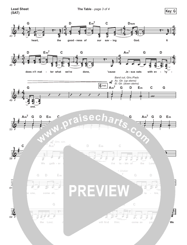 Download the sheet music for The Table by Darlene Zschech / HopeUC, from the album The Table: A Christmas Worship Gathering. This song was arranged by Grant Wall in the key of G.