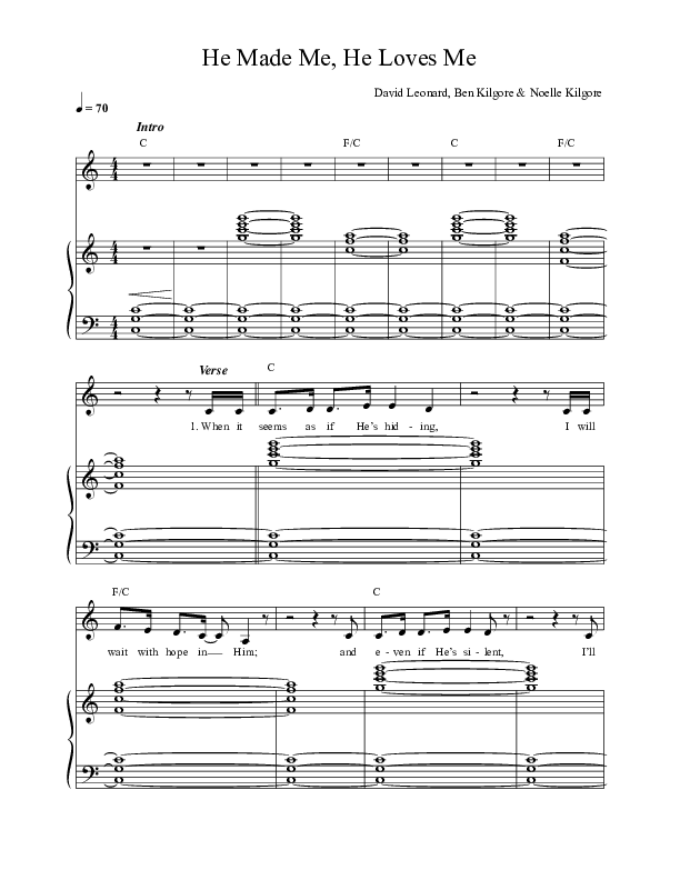 Download the sheet music for He Made Me He Loves Me by Ben & Noelle Kilgore, from the album A Resting Place.
