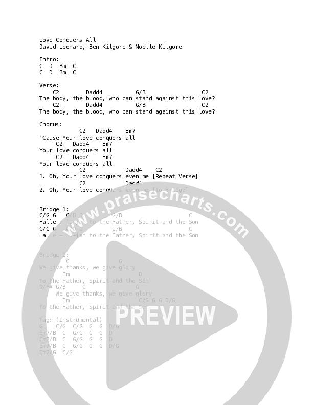 Love Conquers All Chords PDF (Ben & Noelle Kilgore)