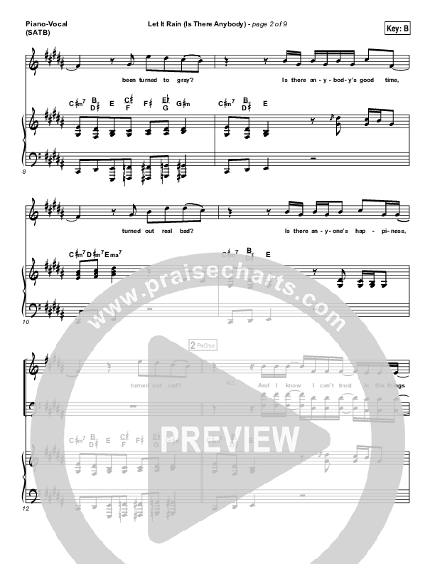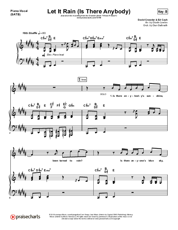 Download the sheet music for Let It Rain (Is There Anybody) by Mandisa / Crowder, from the album I Know A Ghost. This song was arranged by Dustin Loehrs / Daniel Galbraith in the key of B, Bb.
