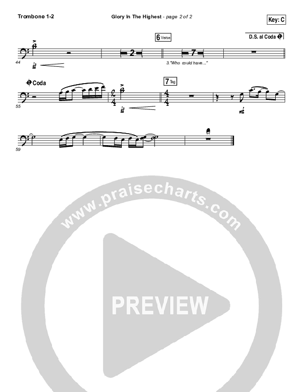 Glory In The Highest Trombone Sheet Music PDF (Travis Cottrell / Lily Cottrell)