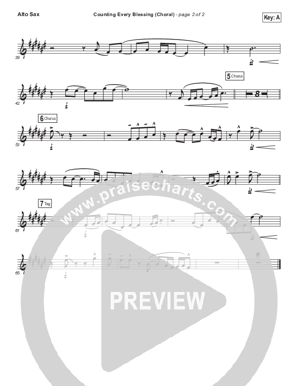 Download the AltoSax sheet music for Counting Every Blessing (Choral Anthem SATB) by Rend Collective / Arr. Luke Gambill, from the album Good News. This song was arranged by Luke Gambill / Daniel Galbraith in the key of A.