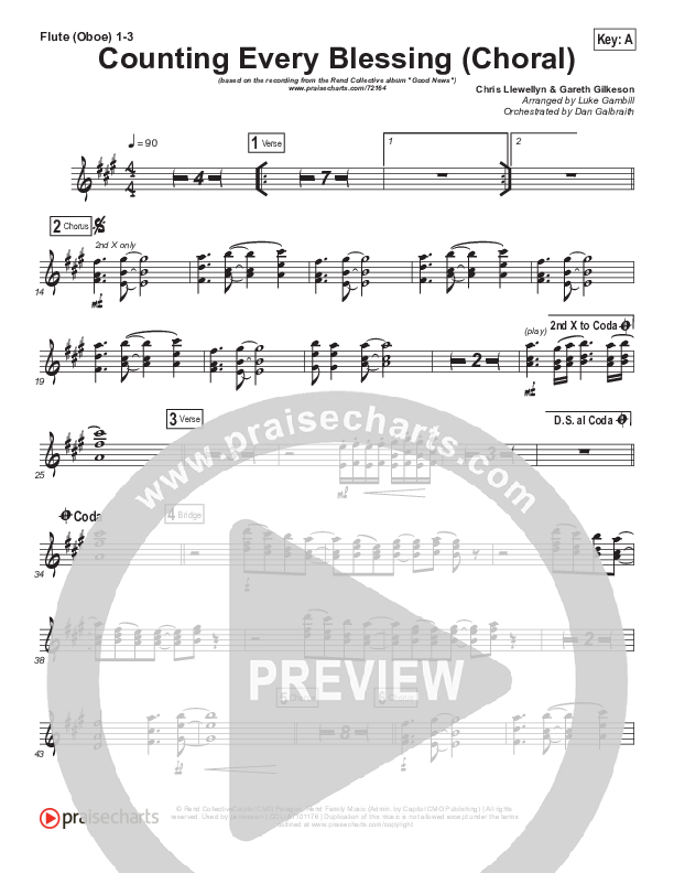 Download the Orchestration wind parts for Counting Every Blessing (Choral Anthem SATB) by Rend Collective / Arr. Luke Gambill, from the album Good News. This song was arranged by Luke Gambill / Daniel Galbraith in the key of A.