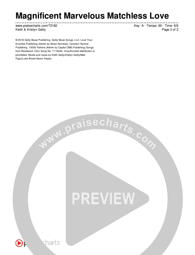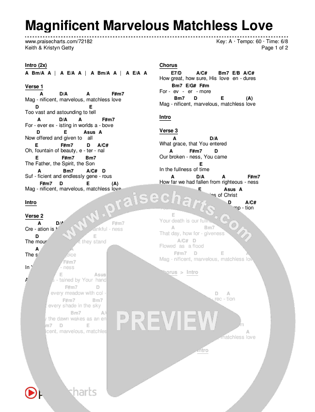 Magnificent Marvelous Matchless Love Chords PDF (Keith & Kristyn Getty)
