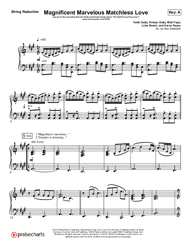 Download the Orchestration string parts for Magnificent Marvelous Matchless Love by Keith & Kristyn Getty, from the album The North Coast Sessions. This song was arranged by Paul Campbell / Simon Nathan in the key of A, Bb.
