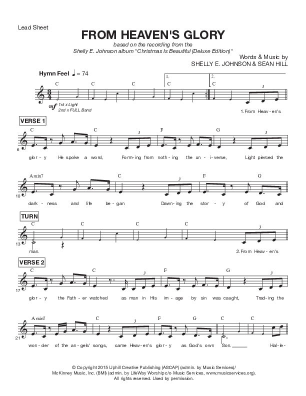 Download the sheet music for From Heaven's Glory by Shelly E. Johnson, from the album Christmas Is Beautiful. This song was arranged by Ed Kerr in the key of C.