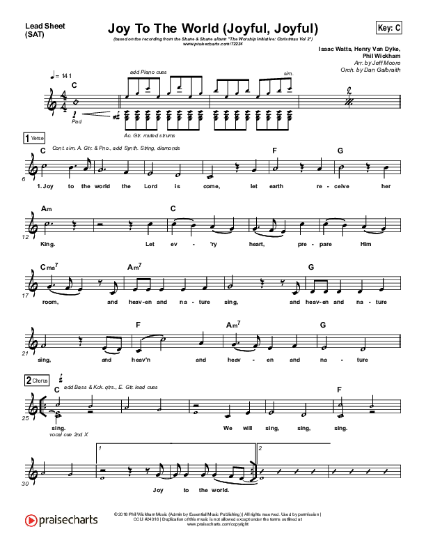 Joy To The World (Joyful Joyful) Sheet Music PDF (Shane & Shane / Phil Wickham / The Worship Initiative)