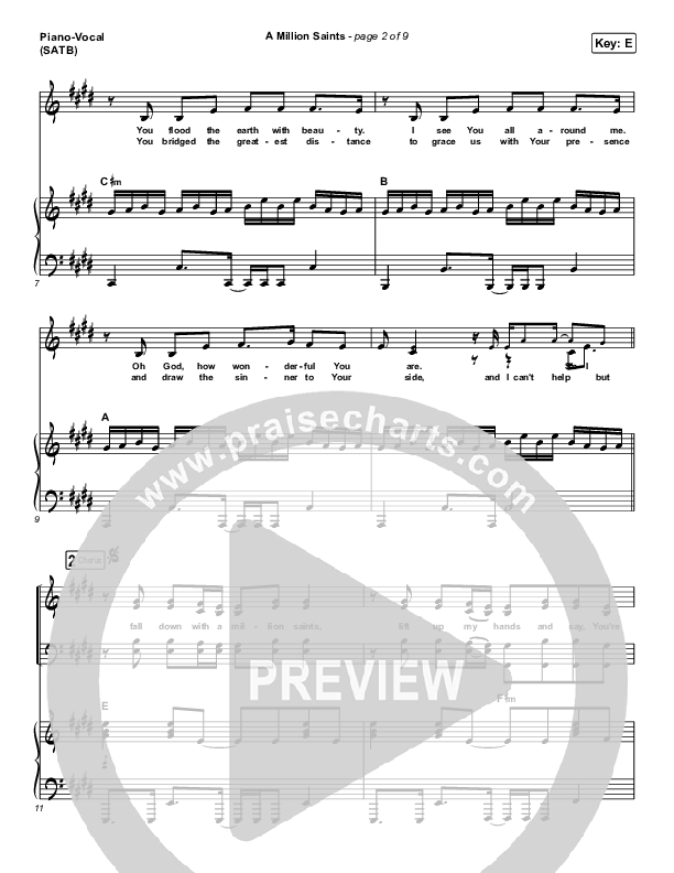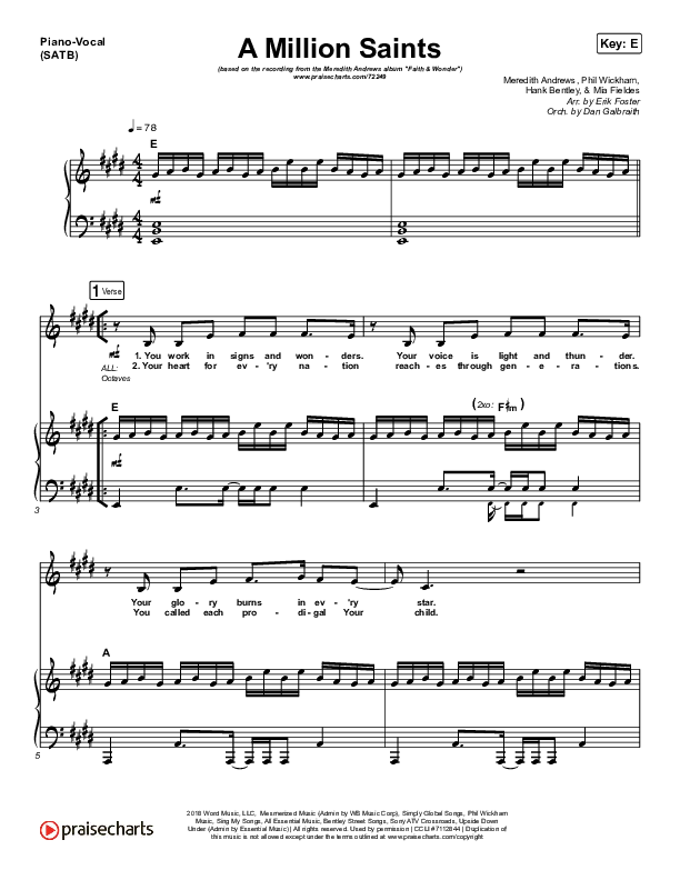 Download the sheet music for A Million Saints by Meredith Andrews, from the album Faith And Wonder (Live). This song was arranged by Erik Foster / Daniel Galbraith in the key of E, Eb.