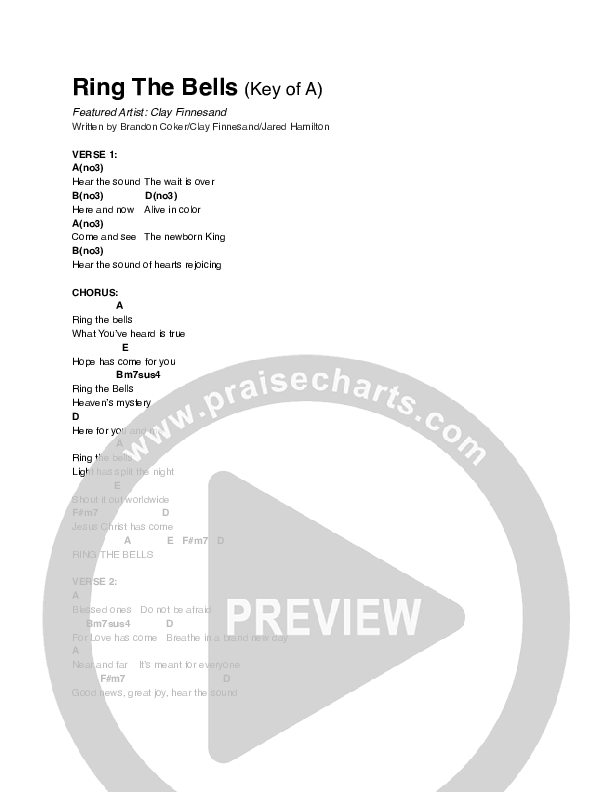 Download the PDF Chord Charts for Ring The Bells by North Point Worship / Clay Finnesand, from the album Ring The Bells.
