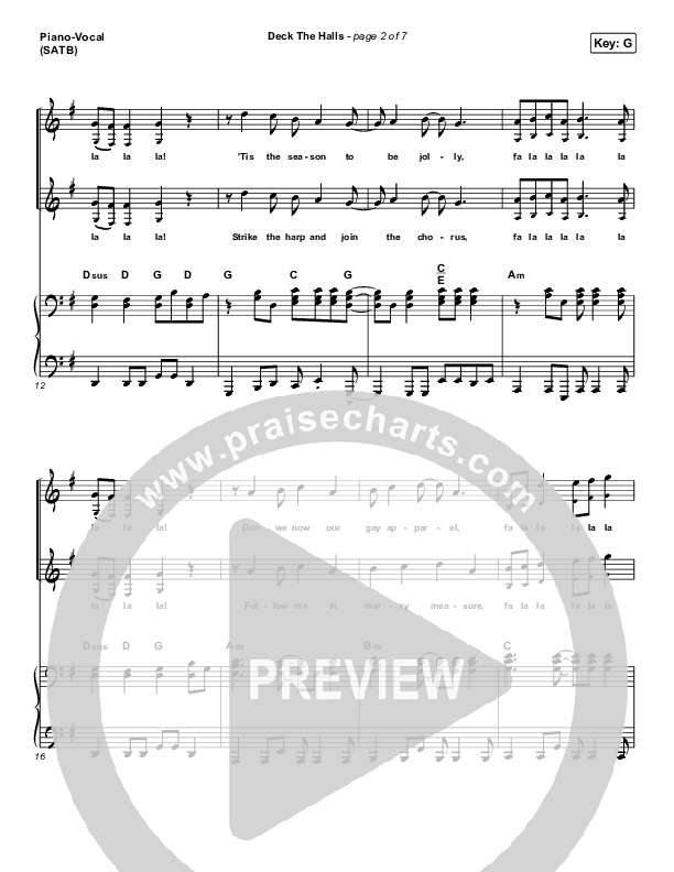Download the sheet music for Deck The Halls by Tenth Avenue North, from the album Decade The Halls Vol 1. This song was arranged by Dustin Loehrs in the key of F, G.