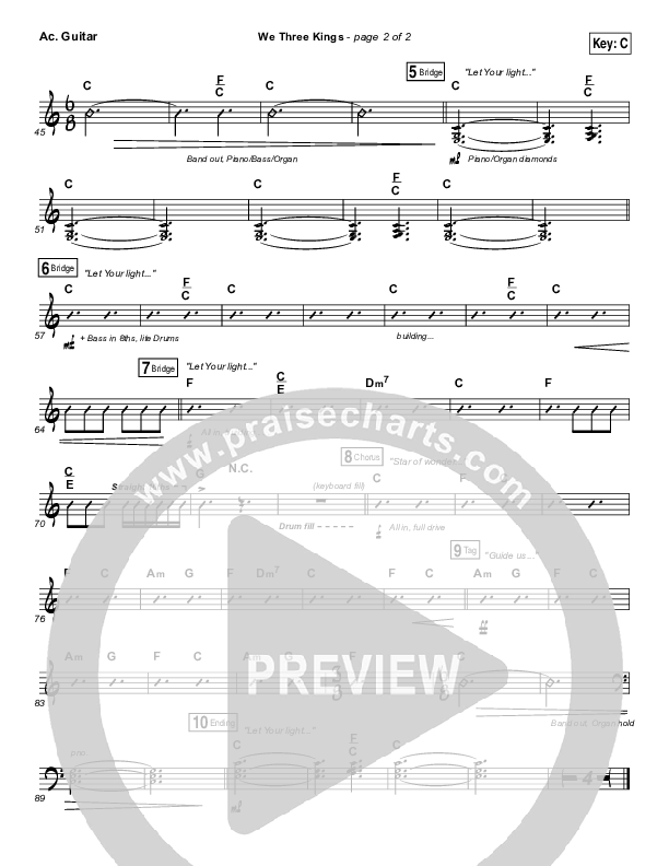 Download the Acoustic Guitar sheet music for We Three Kings by Tenth Avenue North / Britt Nicole, from the album Decade The Halls Vol 1. This song was arranged by Dustin Loehrs / Daniel Galbraith in the key of C, Db.