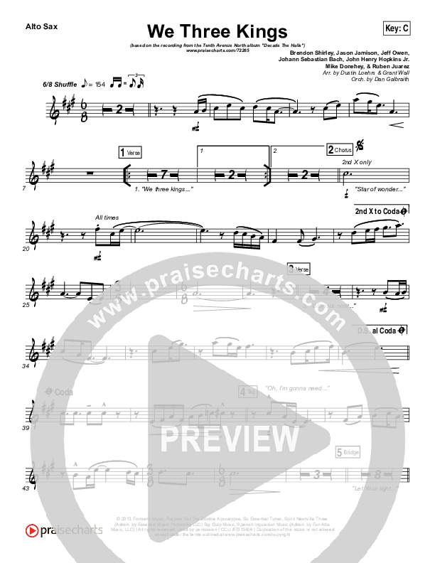 We Three Kings Alto Sax Sheet Music PDF (Tenth Avenue North / Britt Nicole)