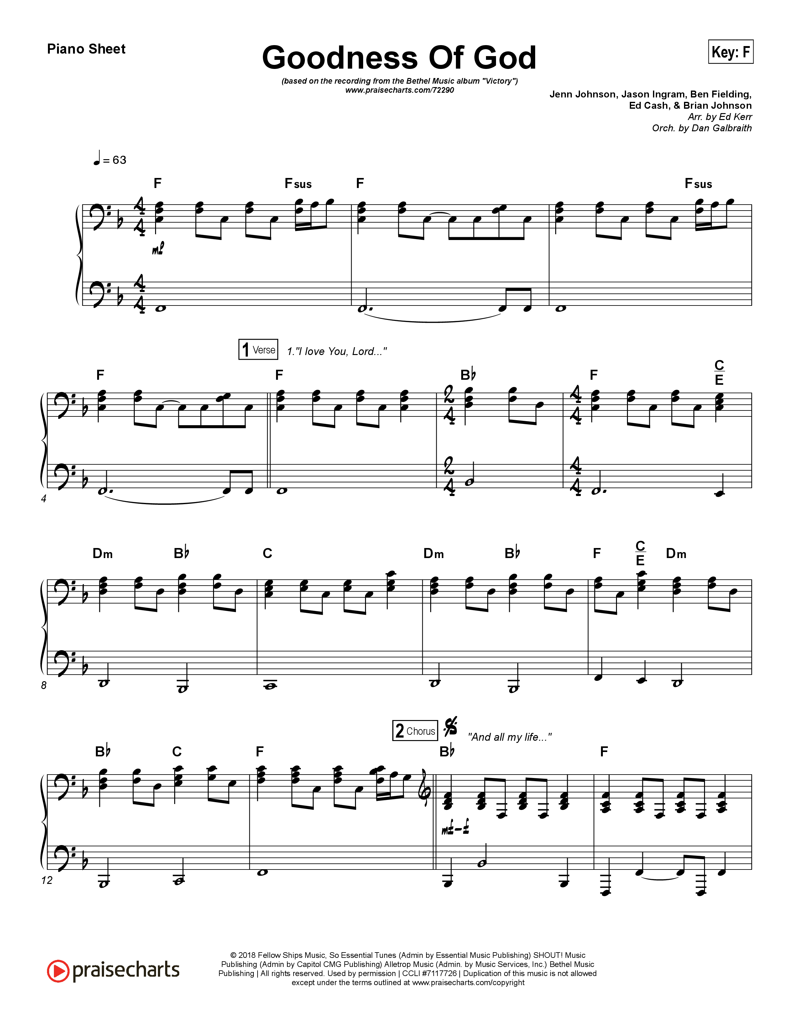 Download the Orchestration for Goodness Of God by Bethel Music / Jenn Johnson, from the album Victory. This song was arranged by Ed Kerr in the key of A, Ab, Bb, C, G.