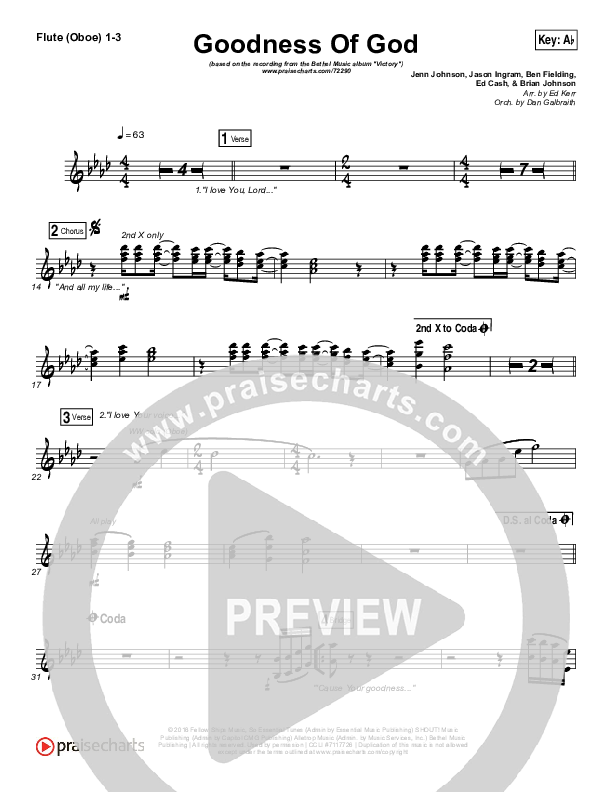 Download the Orchestration wind parts for Goodness Of God by Bethel Music / Jenn Johnson, from the album Victory. This song was arranged by Ed Kerr in the key of A, Ab, Bb, C, G.