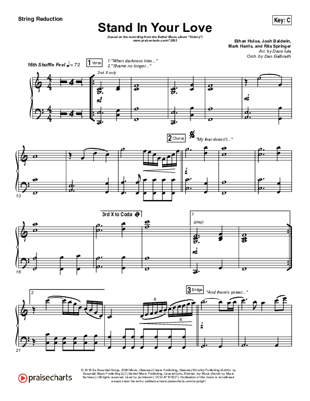 Download the Orchestration for Stand In Your Love by Bethel Music / Josh Baldwin, from the album Victory. This song was arranged by Dave Iula / Daniel Galbraith in the key of A, Ab, Bb, C, G.