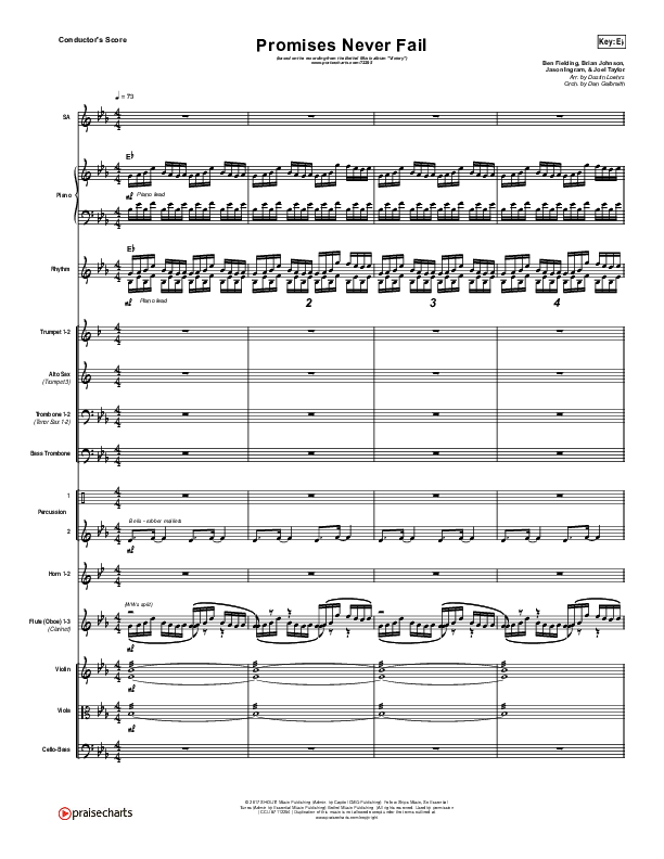 Download the Orchestration for Promises Never Fail by Bethel Music / Emmy Rose, from the album Victory. This song was arranged by Dustin Loehrs / Daniel Galbraith in the key of E, Eb.