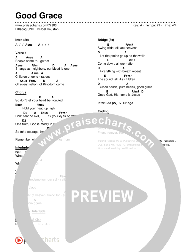 Good Grace Chords PDF (Hillsong UNITED / Joel Houston)