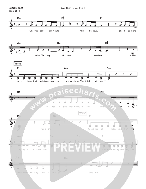 Download the sheet music for You Say (Simplified) by Lauren Daigle, from the album Simplified Worship. This song was arranged by Dave Iula in the key of A, F.