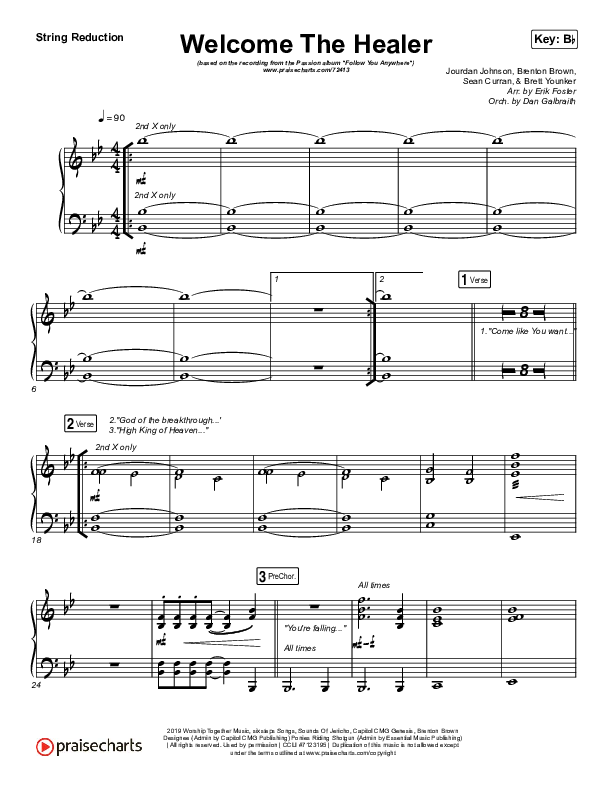 Download the Orchestration for Welcome The Healer by Passion / Sean Curran, from the album Follow You Anywhere. This song was arranged by Erik Foster / Daniel Galbraith in the key of Bb, C.